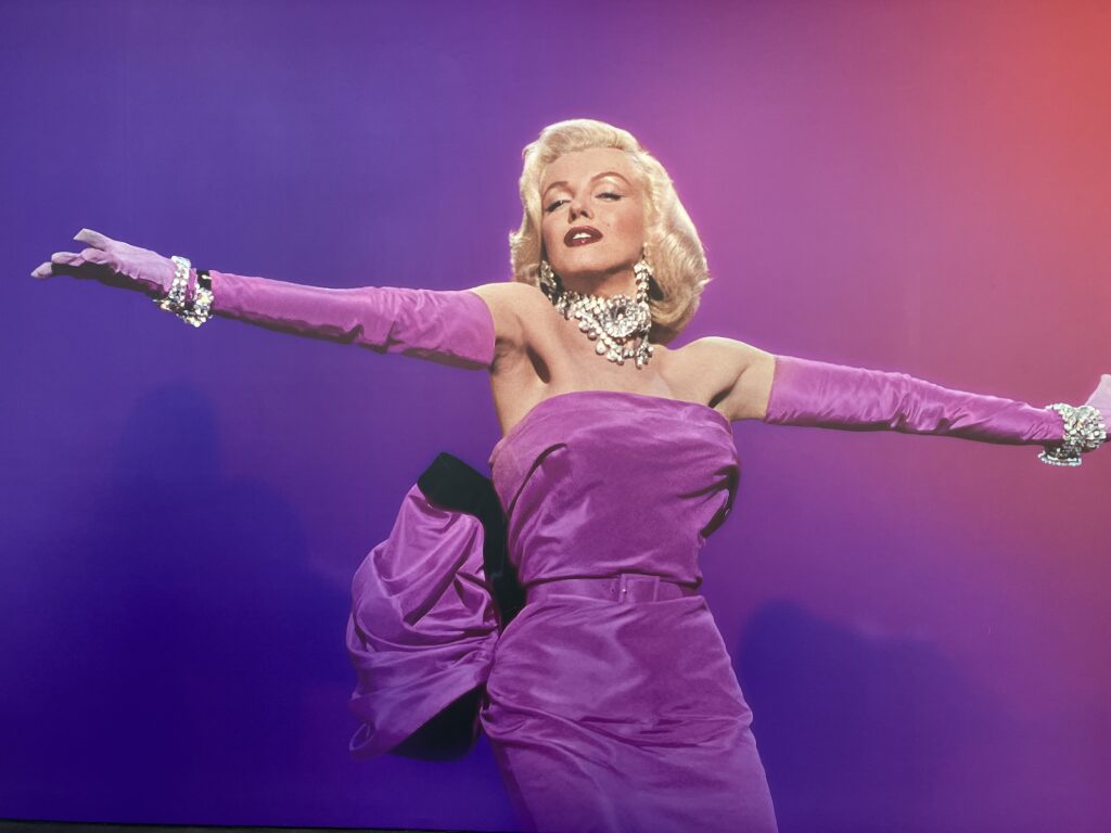 Interestingly, you brought up Marilyn Monroe because what our marketing team has chosen here (on the wall across from us is a famous sequence from Gentlemen Prefer Blondes) is in my mind, a bold color choice. I mean, a pink dress in a red set design. It’s crazy. Can it be any more intense? It’s incredibly intense.
