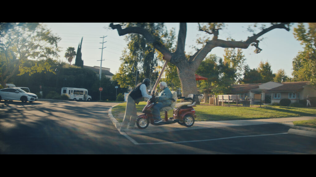 With Josh, while we were shot listing, he was literally editing the film in his head and pre-vis a lot of things with an iPhone and pre-shoot it. For instance, the scooter sequence. We went and we pre-shot the crash and the escape from the retirement home and all that just on our iPhone. Josh edited it together. We kind of see what works, what’s feeling a bit sloppy, what do we change, and then we go on to set with a perfect plan of what we’re going to do. I think that relationship is really beautiful.