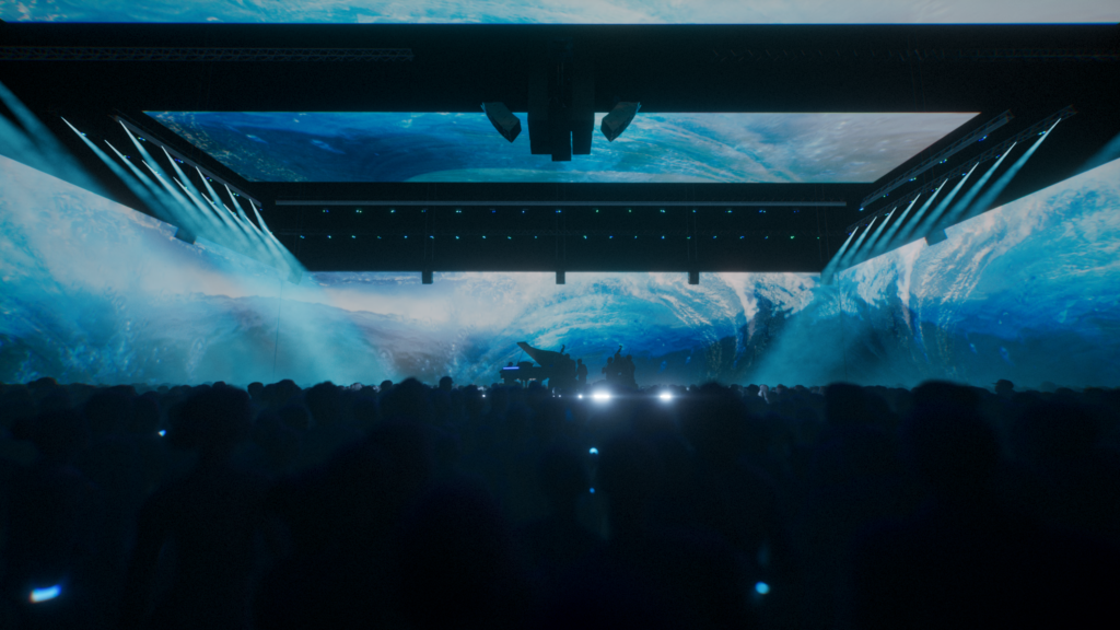I also used a RED 8K camera that gives a 360-degree feeling. I hired two young engineers and a drone pilot, and they made the first 360-degree FVP drone. We built it ourselves. It has five cameras: front, back, left, right, and the roof. We were able to fly really close to the locations. It’s going to be like a rollercoaster at the concerts.
