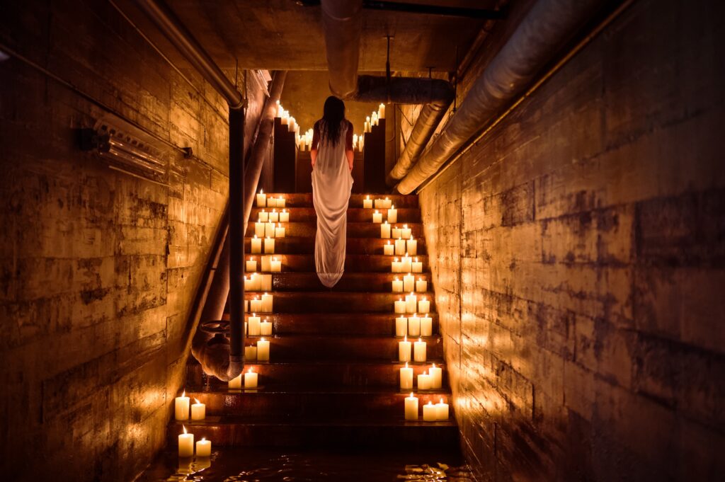 There’s this cave set on the stage, and it’s quite intricate. It’s cut with foam and then painted. The art department and their creative work is so impressive when you go into the cave you feel claustrophobic… It’s dark and scary. I shot some tests with my iPhone the week before with different colors and lighting effects, just so we could get an approximation of the look. I ran it by the team, and we were all on board. When I saw it all put together, I was impressed. The use of music in this series is incredible.