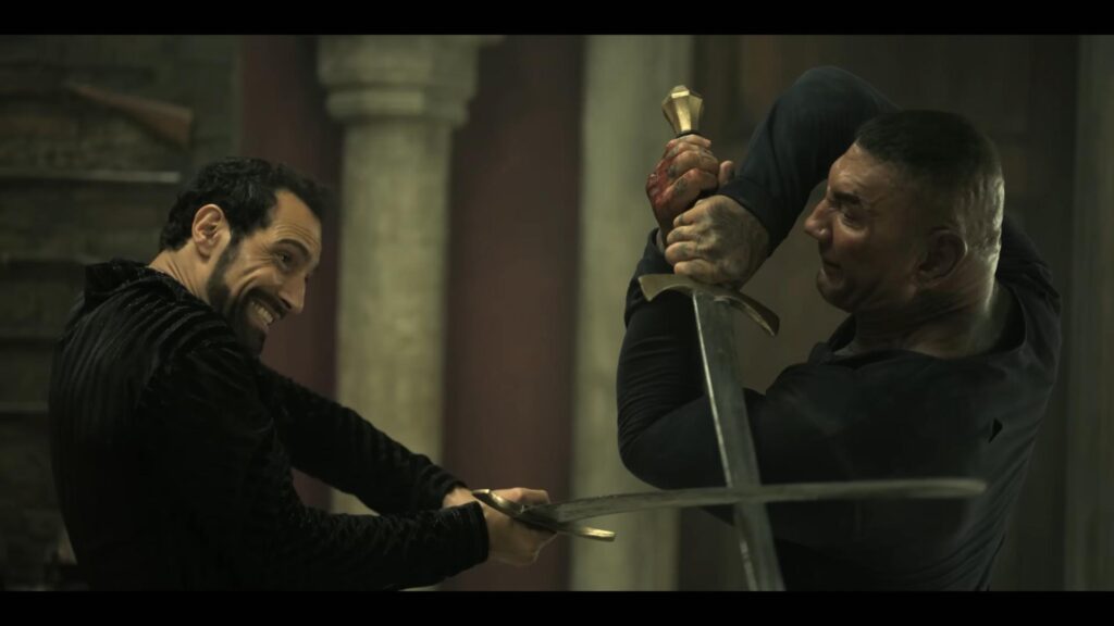 Listen, getting the movie was a big win. Dave Bautista was winning the ultimate mega lottery. Everybody needs some Dave Bautista in their life. He’s such a kind, gentle, generous human that’s just a master, but he’s an apex human being. He’s six foot four. He’s a master of Jiu Jitsu. He’s a wrestler. He fought in some MMA. There’s a lot of actors that can fight in movies but can’t really. Our job is the smoke and mirrors.