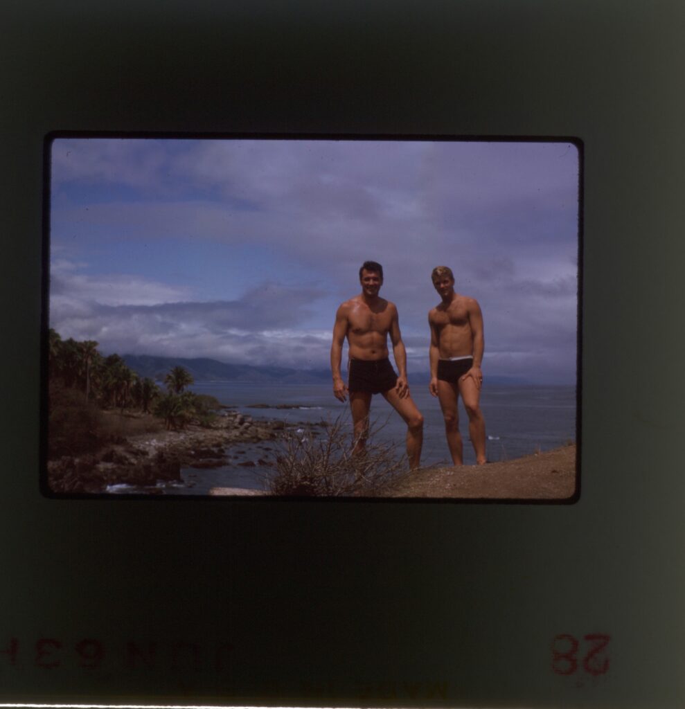 Me and my producer, Carolyn Jurriaans, and we would just have a scanner, we’ll travel, we just do it all ourselves. We’ve scanned thousands of images and slides that we found, the biggest score for us, was uncovering that one photograph of Rock and Lee Garlington, his boyfriend in 1963, in their baiting suits on a cliff that Lee didn’t think existed.
