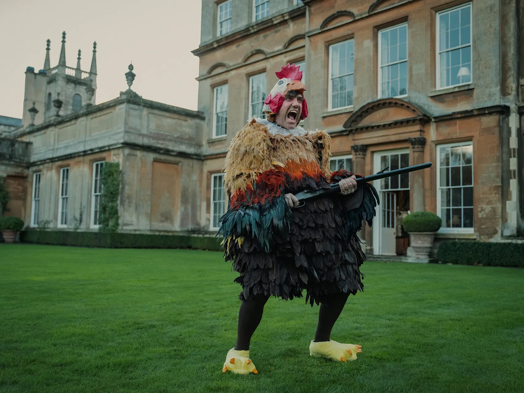 At the same time, he loves to play dress up. The chicken costume was an unintentional dress up, but he puts on the fur coat for Fight Night because he thinks he’s a gangster. He thinks he’s Brad Pitt in Fight Club. And then, you’ve got him playing dress up when he is pretending to be Ukrainian or Russian or whatever it was, and he’s got the turtleneck and the hurling overcoat. There’s the sense of fun, but it is believable. I think when Americans watch it, they think, wow, that’s pretty eccentric and crazy. But if you are British and you’ve met these people, you’re like, “Yeah, I know Freddy. We all know of Freddy.”